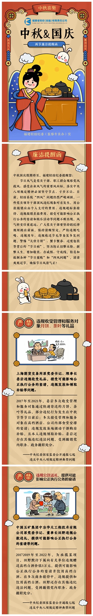 中秋國慶廉潔提醒函——福建輕紡紀委