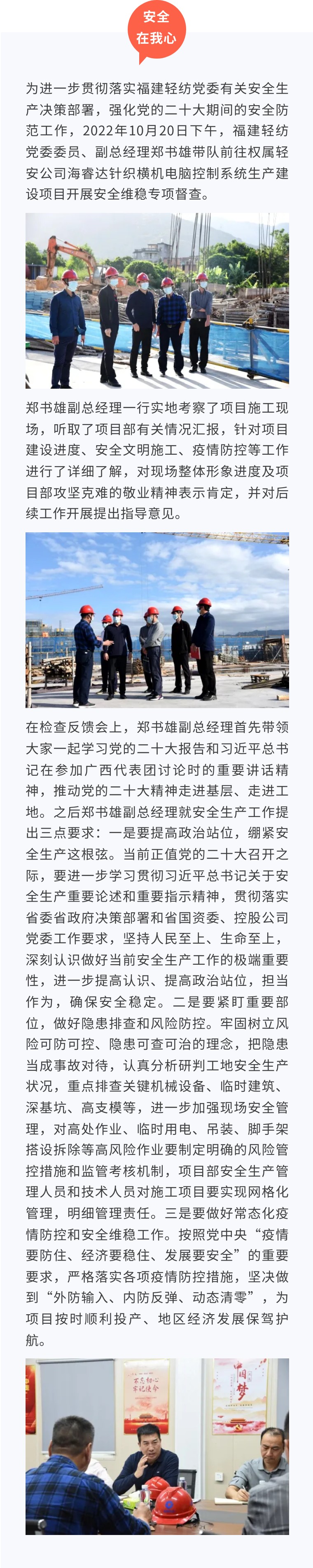 福建輕紡黨委委員、副總經理鄭書雄帶隊開展安全維穩專項督查