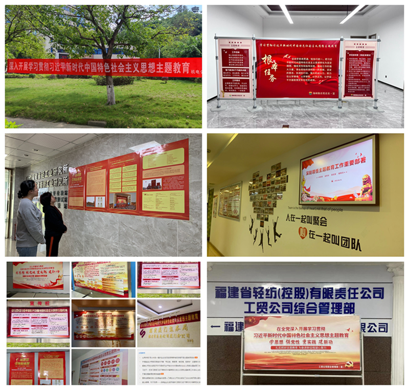 著眼做好主題教育動員,增強學習實效,組織系統內各單位訂購、配發中央規定的8種學習材料共計5742冊。公司OA、官網、及公眾號第一時間開設“主題教育”專欄,及時刊發主題教育有關重要信息和學習資料,營造良好輿論氛圍,。海峽融合、金皇環保、福鹽集團等權屬單位積極利用智慧屏、LED顯示屏滾動播放主題教育總要求、根本任務、具體目標等學習內容,深入闡釋習近平總書記重要講話精神和黨中央部署要求,放大“萬屏聯動”效應。青山紙業、輕紡設計院、輕安公司、輕工所等權屬單位通過制作宣傳展板、宣傳海報深入宣傳主題教育的重大意義、目標任務、進展成效,抓實輿論宣傳,掀起學習熱潮。