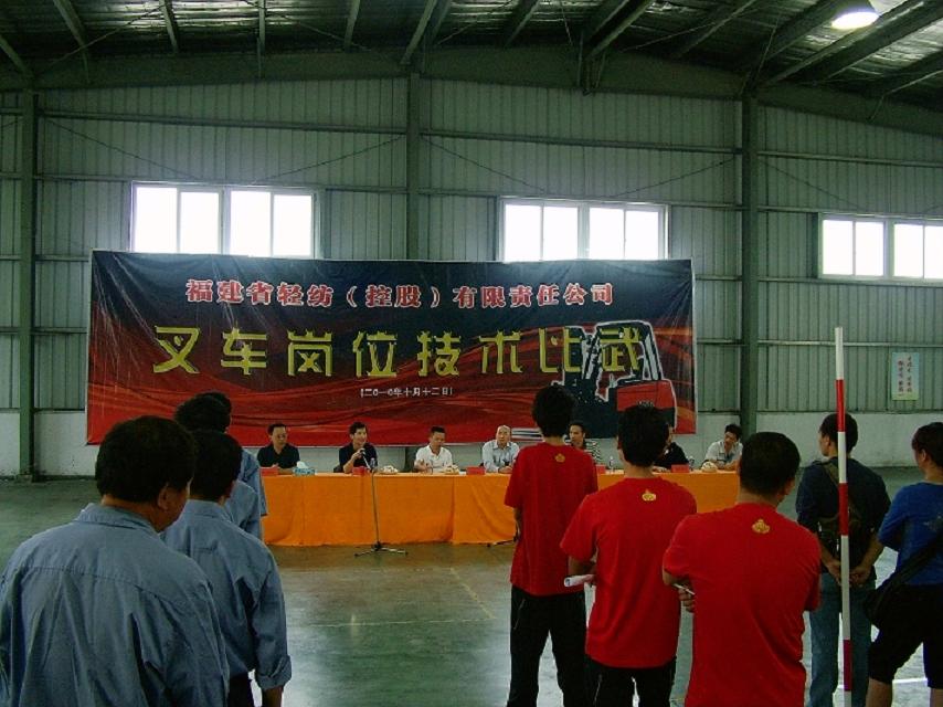 省輕紡(控股)公司于10月12日在莆田晶秀輕化有限公司舉辦一場叉車崗位技術比武活動,福建南紙、青山紙業、化纖集團、鹽業公司各推薦3名選手參賽,省輕工業安裝公司派員觀摩。舉辦此次崗位技術比武活動得到了省國資委的支持,并派人到場指導。