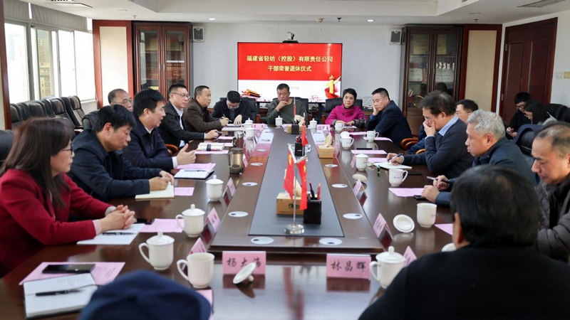 為進一步增強退休干部的政治榮譽感和組織歸屬感,1月31日,福建輕紡舉行干部榮譽退休儀式。會議由公司黨委委員、副總經理陳國樑主持,黨委副書記、副董事長、總經理鄭書雄參加會議并講話。2023年司管退休干部、年輕干部代表、相關部室負責人參加會議。
