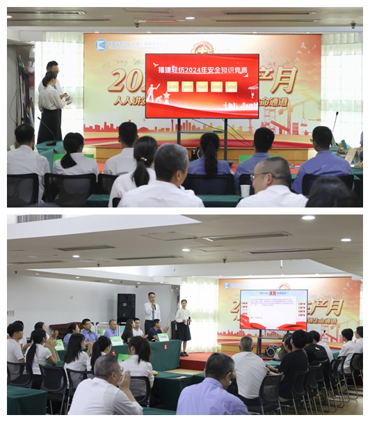 為深入宣傳貫徹落實習(xí)近平總書記關(guān)于安全生產(chǎn)重要論述,推動樹牢安全發(fā)展理念,2024年“安全生產(chǎn)月”期間,福建輕紡積極開展“人人講安全 個個會應(yīng)急”安全知識競賽。6月27日,知識競賽決賽在青山紙業(yè)廣電中心圓滿舉行。福建輕紡黨委副書記、副董事長、總經(jīng)理鄭書雄,黨委委員、總會計師鄭劍軍,福建輕紡各二級權(quán)屬企業(yè)負(fù)責(zé)人出席活動。