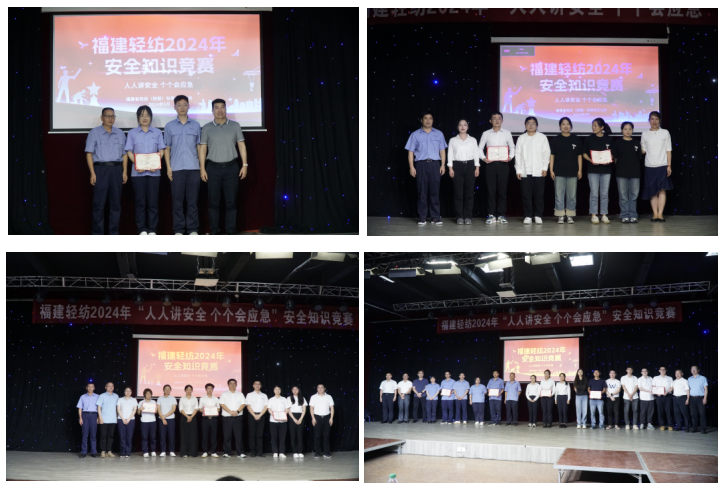 此次知識競賽活動的成功舉辦,進(jìn)一步營造了濃厚的安全生產(chǎn)氛圍,引導(dǎo)全體干部職工始終繃緊安全生產(chǎn)這根弦,樹立安全思想,加強(qiáng)安全防范意識,提高安全防范能力,立足本職崗位做貢獻(xiàn),推動各項工作取得新進(jìn)展,全方位推進(jìn)福建輕紡高質(zhì)量發(fā)展。