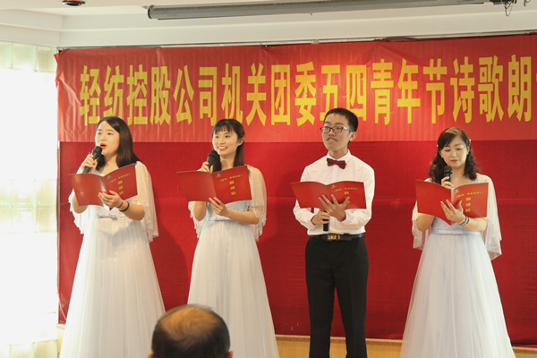 為深入學(xué)習(xí)貫徹習(xí)近平新時代中國特色社會主義思想和黨的十九大精神,弘揚“五四”精神,展示福建輕紡團(tuán)員青年在“再上新臺階、建設(shè)新福建”中的使命擔(dān)當(dāng)和精神風(fēng)貌,5月4日,由福建輕紡機(jī)關(guān)團(tuán)委主辦的“五四“青年節(jié)詩歌朗誦比賽在公司四樓會議室舉行,公司黨組副書記、總經(jīng)理黃文定,黨組成員、副總經(jīng)理陳國樑、本部各部室負(fù)責(zé)人、各權(quán)屬企業(yè)黨組織負(fù)責(zé)人到現(xiàn)場觀摩、指導(dǎo)。