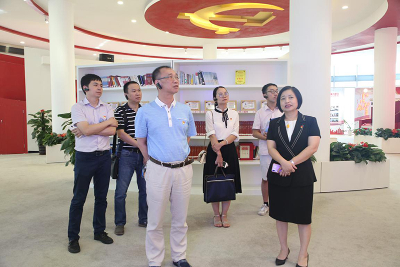 陳國樑同志一行在智恒科技股份有限公司黨委書記李文珍的陪同下,觀摩了智恒黨建展廳、多媒體展廳、數字生態云數據中心、旗山智谷孵化器、物聯網種植園等各具特色的區域,詳細了解了智恒科技黨委在創新開展基層黨建工作中的先進經驗和做法。