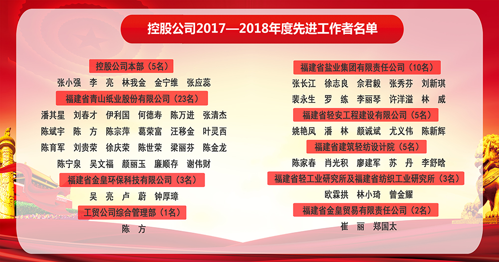 福建輕紡2017-2018年先進(jìn)工作者風(fēng)采錄(一)