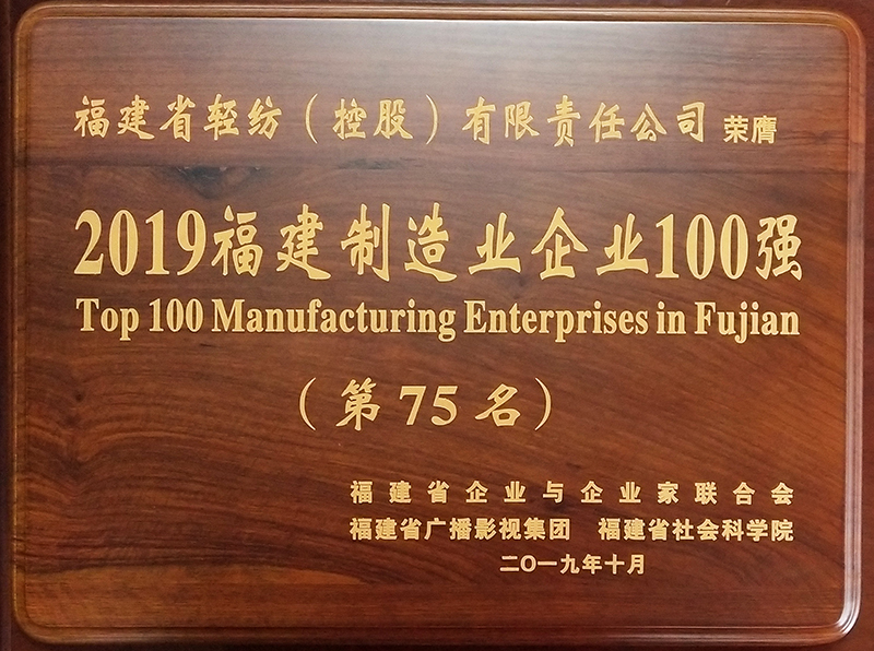 10月24日,由福建省企業與企業家聯合會、福建省社會科學院、福建省廣播影視集團共同舉辦的2019年福建企業100強研究發布在福建漳州舉行,福建省輕紡(控股)有限責任公司入選福建省制造業100強,位列75名。福建輕紡副總經理鄭書雄受邀參會。