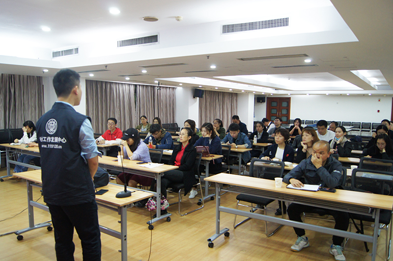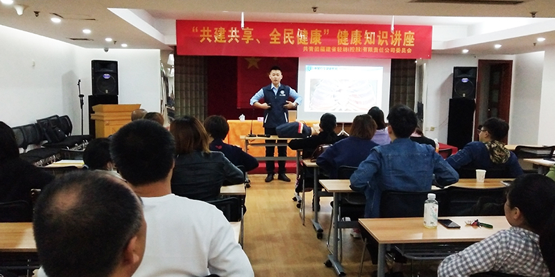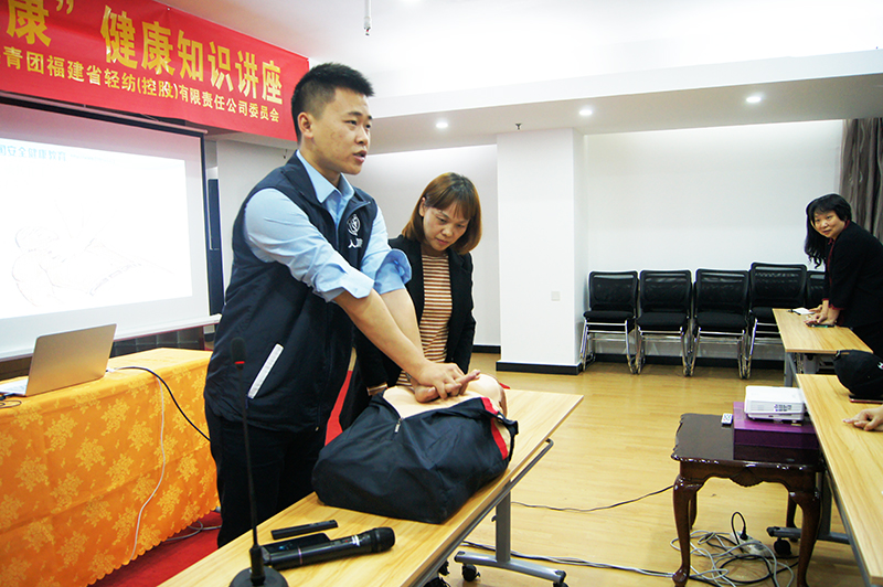 為倡導健康科普理念,傳播應急救護基本知識,提高員工安全防護意識,增強自救互救能力,11月22日下午,福建輕紡在金皇大廈4樓舉辦“共建共享、全民健康”知識講座。安全健康教育中心鄭凡為本次活動的主講老師,公司員工40余人參加講座。
