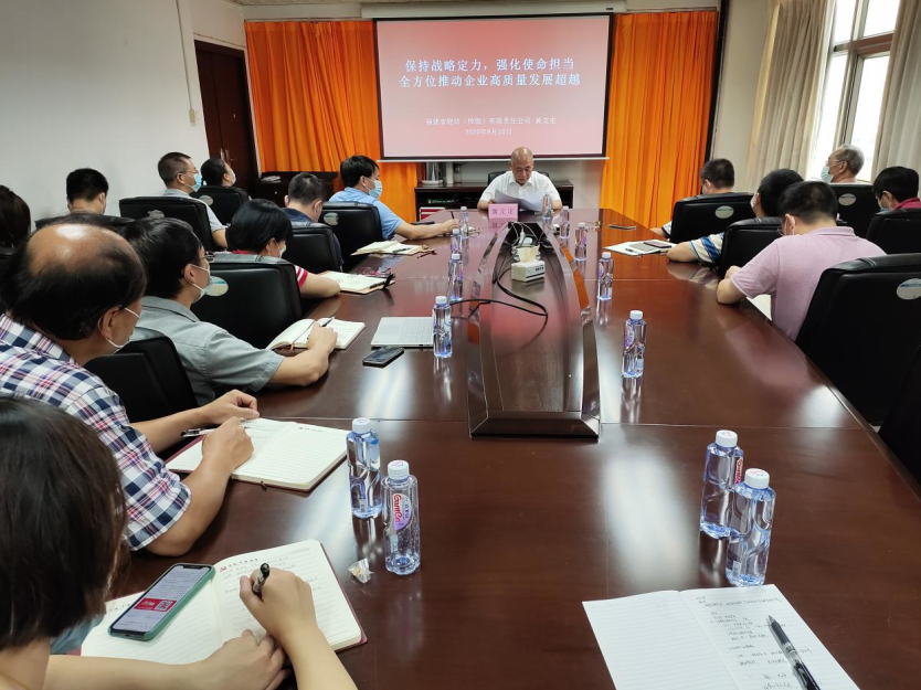 8月20日上午,福建輕紡黨組書記、總經理黃文定結合學習貫徹習近平新時代中國特色社會主義思想、習近平總書記對福建工作的重要指示批示及重要講話精神和《習近平在廈門》《習近平在寧德》《習近平在福州》《習近平在福建》系列采訪實錄的認識、體會,以“保持戰略定力,強化使命擔當,全方位推動企業高質量發展超越”為題到省建筑輕紡設計院上黨課,與大家作了深入淺出的交流。設計院領導班子成員、中層干部、在職黨員、退休支部黨員代表、入黨積極分子及團員代表共34人聆聽了黨課。