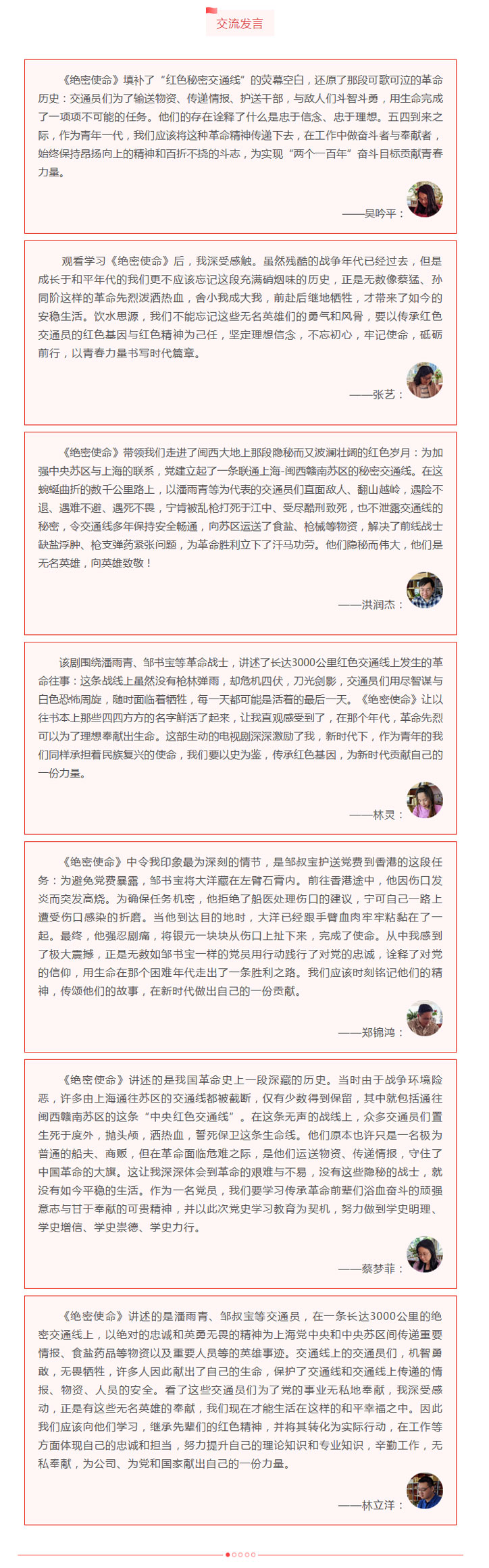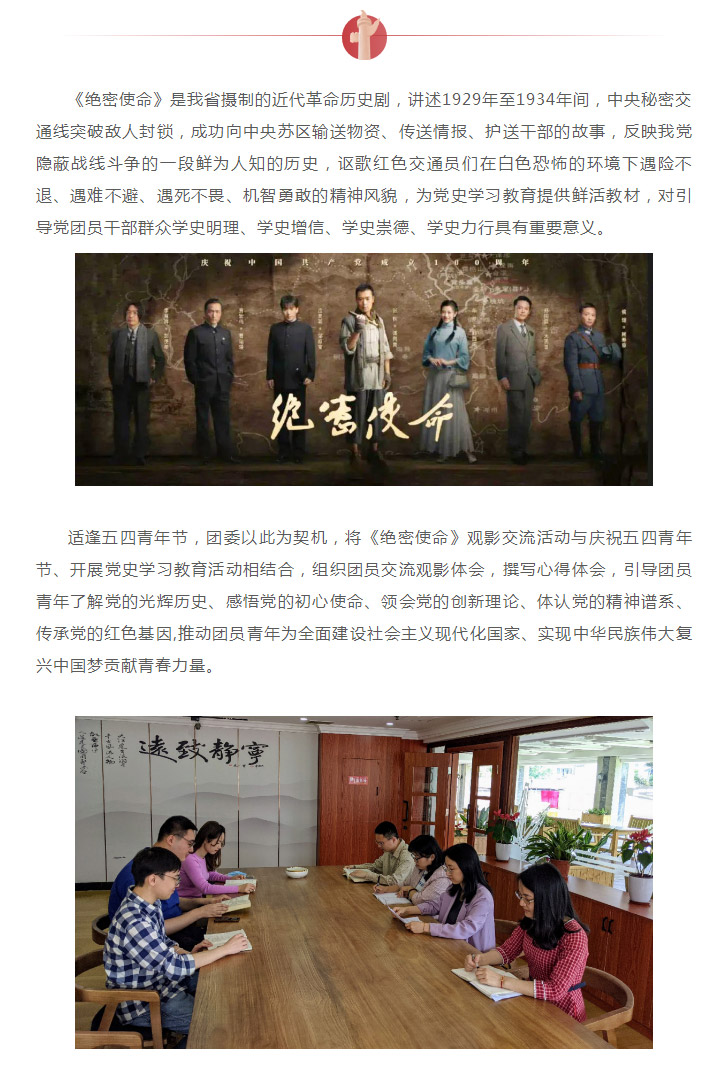 福建輕紡團委組織召開“迎五四·學黨史”之《絕密使命》觀影交流活動(一)