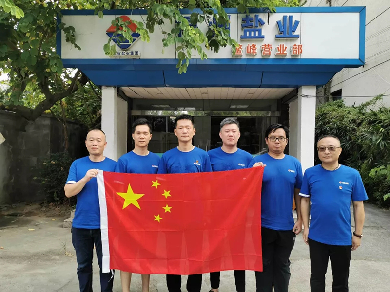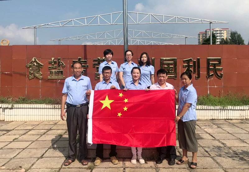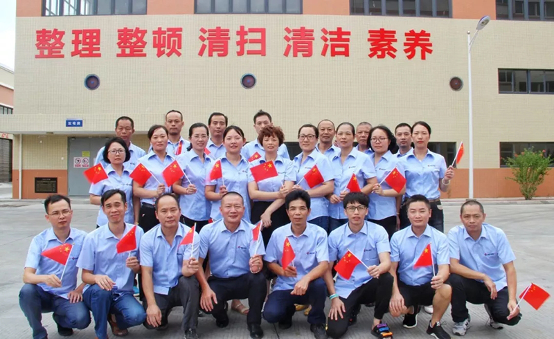 圖為福建省泉州晶海輕化有限公司員工與國旗合影