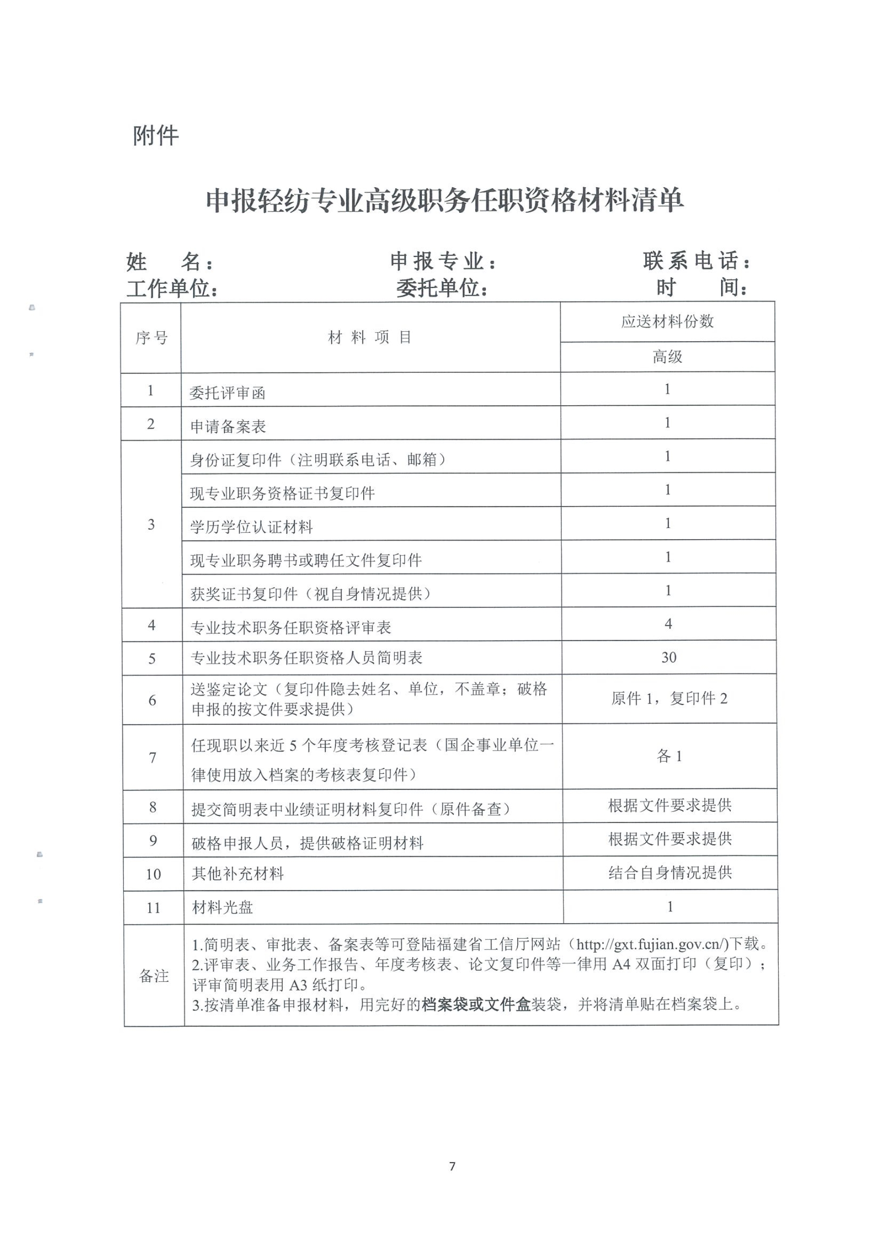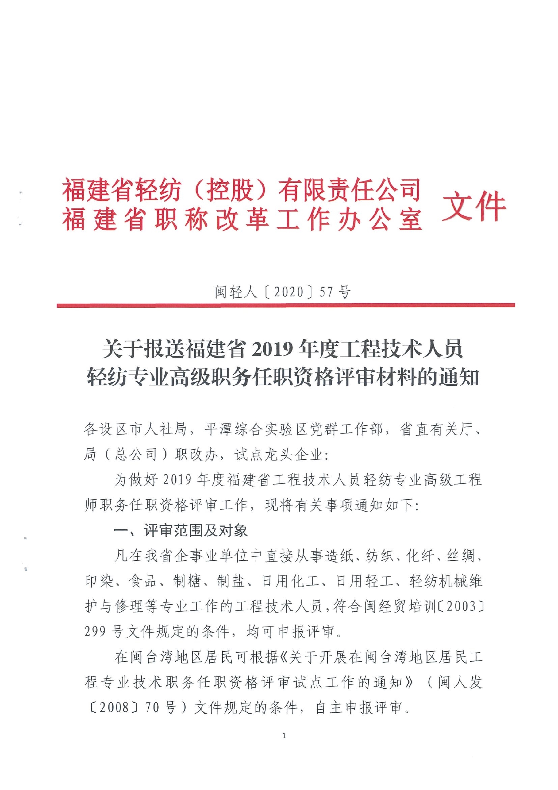 關于報送2019年度工程技術人員輕紡專業高級職務任職資格評審材料的通知