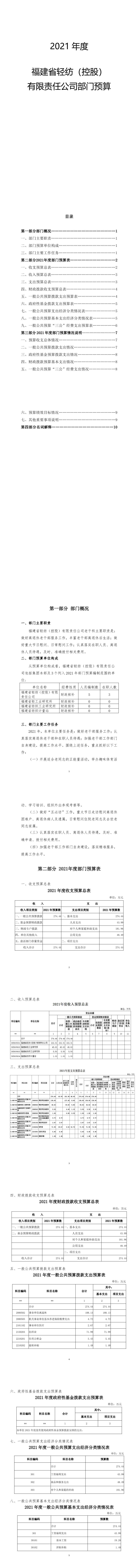 2021年度福建省輕紡(控股) 有限責任公司部門預算