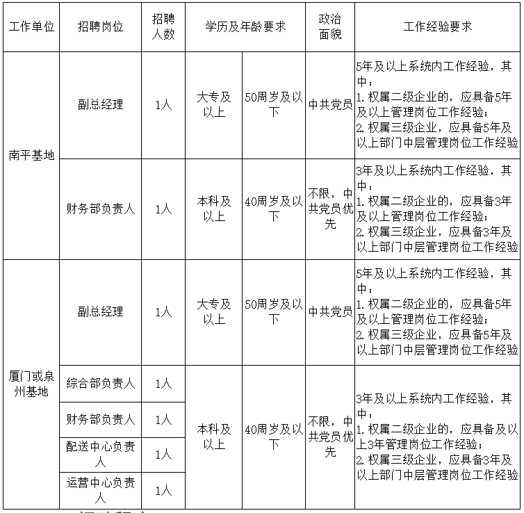 因業務發展需要,現面向福建省輕紡控股系統內公開選聘基地管理人員。