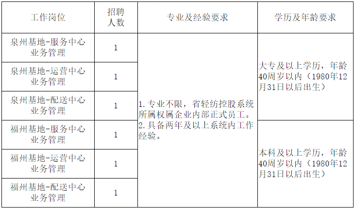 面向福建省輕紡控股系統內公開選拔符合條件的人員。