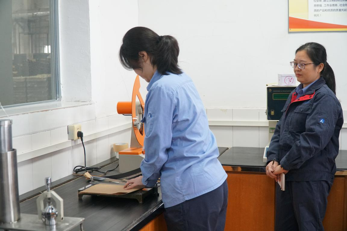 競賽由理論知識考試和實踐操作考核兩部分組成。在理論知識考試中脫穎而出的十六名檢驗工人進入實操競賽環節,實踐操作考核包括橫幅定量、縱向撕裂度及縱橫向抗張強度等內容。