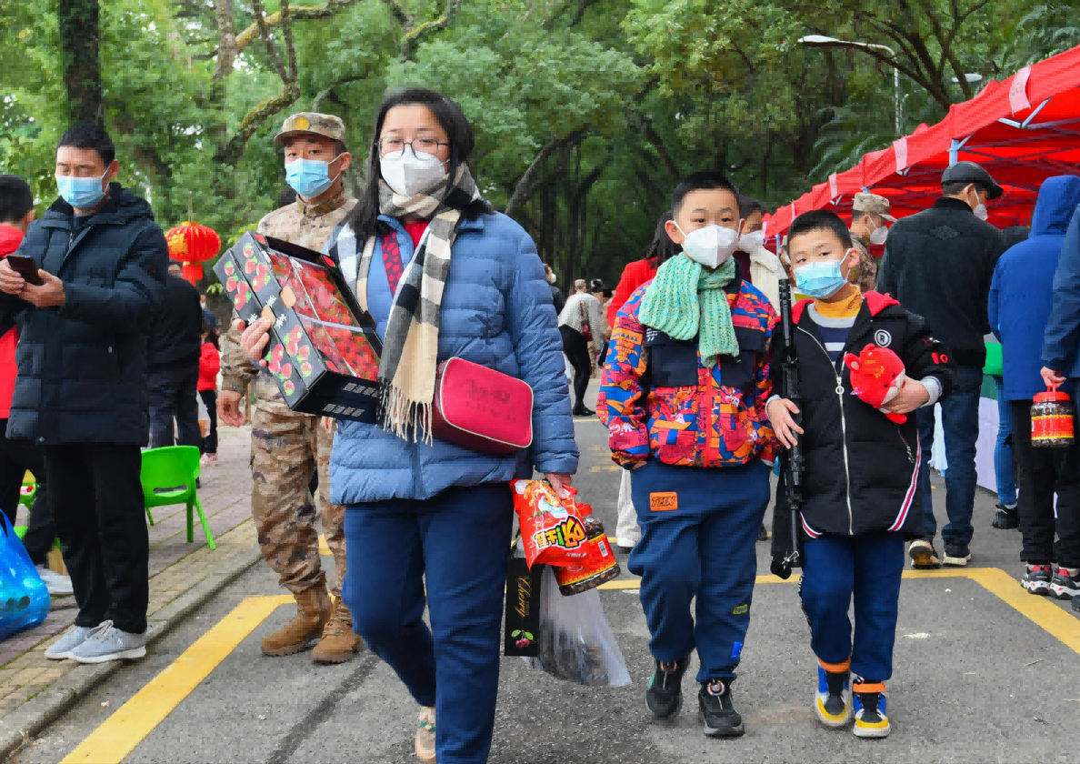 年貨節期間,人頭攢動,琳瑯滿目的優質年貨,洋溢著喜慶的新春對聯,把擁軍愛民,軍民一體喜迎兔年春節的濃厚氛圍推向了高潮。官兵們、家屬們滿載而歸,不少人多次往返購物,直呼“真的好便宜啊”“優惠夠力度”!抽獎區更是驚喜不斷,各個手氣都很旺!兒童樂園區的設備設施從早運轉到傍晚,一刻不停,幾百只兔年吉祥物分發到小朋友手中,小朋友們也樂開了花!