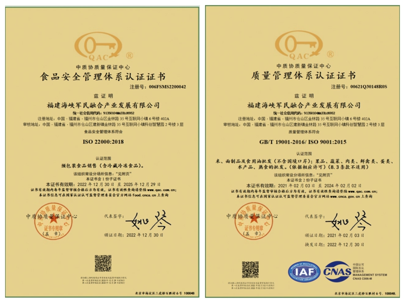 海峽融合始終堅守安全底線,筑牢安全防線,積極打造“安全工程”,進一步建立健全生產安全、食品安全、保密安全和網絡安全管理體系,落實管理責任,強化責任追究,確保安全工作做實做細做到位。目前,公司安全生產標準化體系建設已順利通過專家評審,達到國家工貿行業安全生產標準化三級達標水平,建立了從主要負責人到一線崗位員工覆蓋所有管理和操作崗位的安全生產責任制;積極開展ISO體系認證,獲得IOS9001質量管理體系、IOS14001環境管理體系、IOS45001職業健康安全管理體系和IS022000食品安全管理體系認證證書,企業內部質量架構管理不斷優化;全面開展保密安全線上線下教育,開展保密風險梳理排查工作和保密自查工作,公司全體員工均取得保密培訓合格證書;自建數據中心機房,啟動內部即時通訊軟件,通過定制終端、專線網絡,多重加密,限制訪問等方式,確保平臺數據的安全性和保密性。