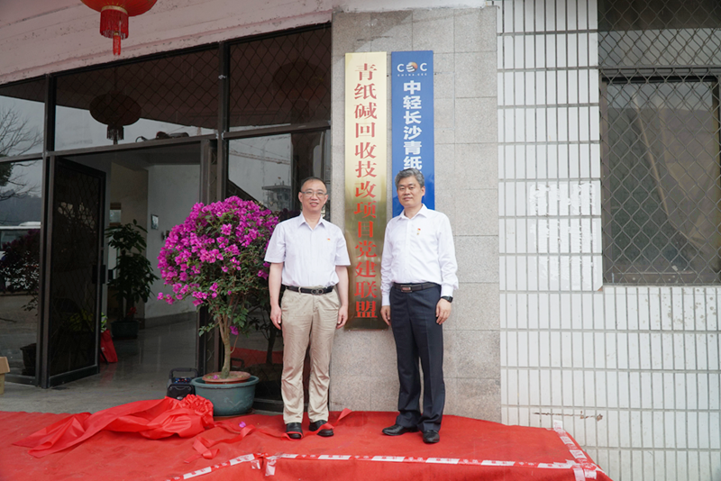 簽約儀式后,與會人員前往堿回收技改項目部為“中輕力量 青紙先鋒”青紙堿回收技改項目黨建聯(lián)盟揭牌,并參觀了黨建室。