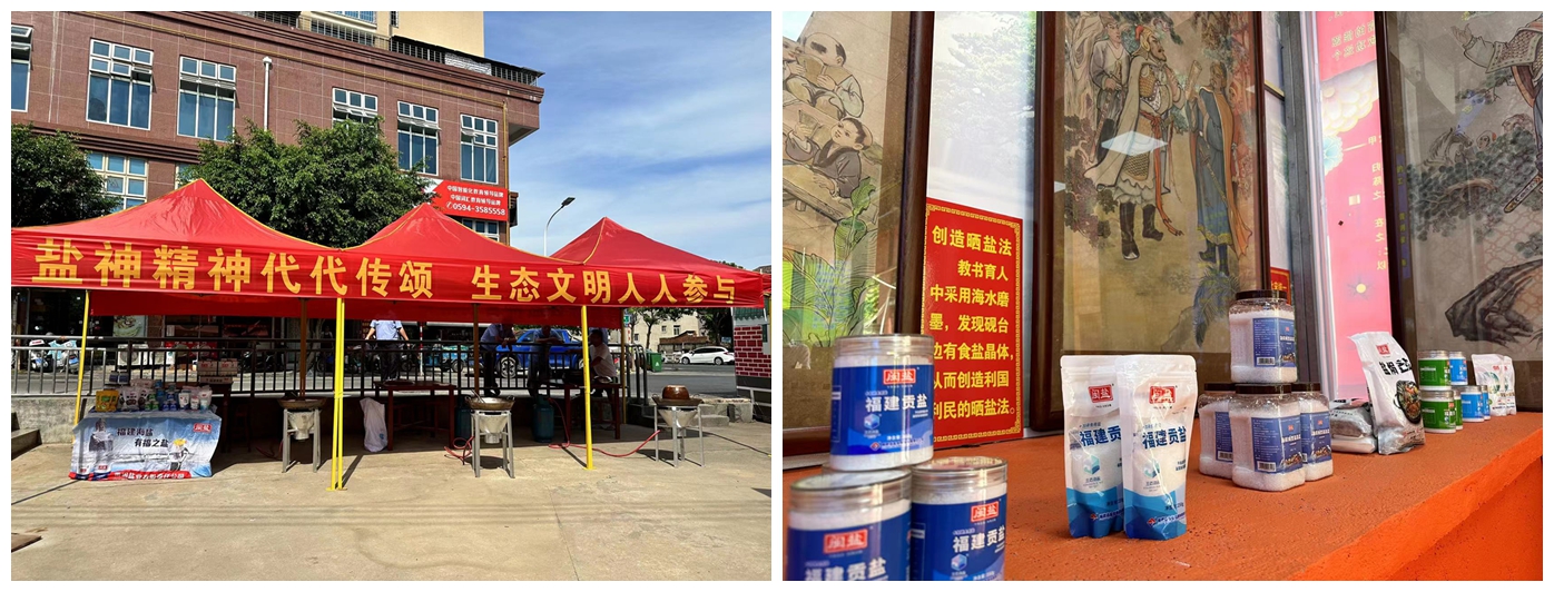 作為莆田海鹽文化的傳承人,莆田鹽業積極參與,在現場擺設“閩鹽”牌莆田海鹽產品展示臺,向導演組、涵江區宣傳部門及當地群眾宣傳莆田人民堅持生態文明的理念,一直堅持沿用“鹽神”陳應功首創的“曬鹽法”制作海鹽產品,如“閩鹽”生態海鹽系列福建貢鹽、天然海晶鹽以及功能鹽產品海鮮肉類洗滌鹽、漱口鹽、果蔬洗滌鹽等。