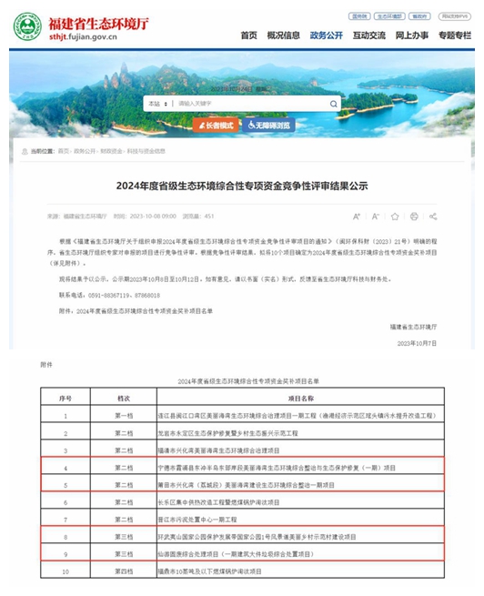 近日,福建省生態環境廳組織專家開展競爭性評審,對重點領域、重點區域重大示范項目擇優給予獎補支持。根據省生態環境廳公示信息,最終有10個項目被確定為2024年度省級生態環境綜合性專項資金獎補項目,其中金皇環保協助地方申報的項目就有5個,占總獎補項目數的一半。