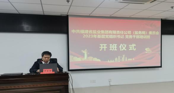 福鹽集團黨委委員、副總經理羅建強在開班儀式上致辭。他強調,此次培訓具有重要意義,參加培訓的各位學員要堅定理想信念,不斷提升政治判斷力、政治領悟力、政治執行力;要傳承紅色基因,勇于奮斗,爭做走在時代前列的奮進者;要心無旁騖,專心學習,做到學有所獲,學有所用;要遵規守紀,展現作風,確保此次培訓取得圓滿成功。