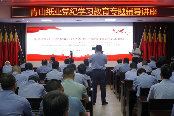 黨紀學習教育開展以來,青山紙業堅持把開展黨紀學習教育作為重要政治任務,高度重視、精心組織,聚焦“學黨紀”主線,把“嚴”和“實”的作風貫穿始終,推動黨紀學習教育走深走實。