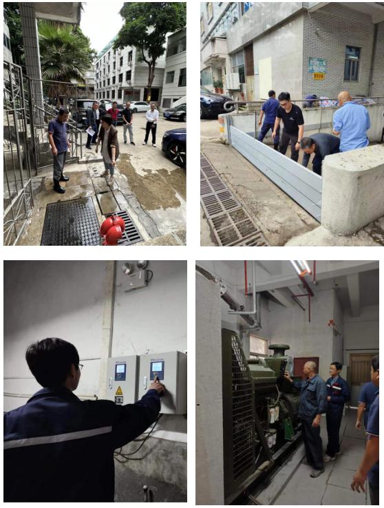 演練從消控中心值班人員發現地下室設備用房雨水倒灌開始,經現場確認、逐級報告批準啟動Ⅲ級防汛預案,安全員組織人員搬運沙袋、啟用防汛擋板阻檔雨水進入地下室,電工檢查排水溝、配電室、發電機等重要設備設施,啟動抽水泵抽水,消控員密切關注大廈周邊情況,逐一檢驗應急處置細節及各部門分工合作。