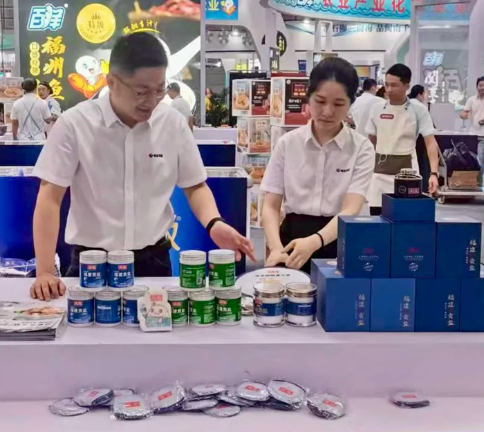 在本屆漁博會上,福鹽集團攜手合作商海欣食品,共同展示了“閩鹽”牌系列產品。福建海鹽作為中國傳統海鹽文化的代表,品質優越。不僅富含對人體有益的鉀、鈣、鎂、鋅、硒等數十種微量元素,而且顆粒晶瑩易溶,口感咸鮮回甘,贏得了現場嘉賓和參展商的一致好評。