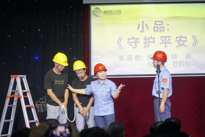 晚會以“安全第一”為主題,將生產安全、消防安全等內容融入歌曲、小品、朗誦、說唱等表演中,呈現出歡快、祥和的氛圍。詩朗誦《安全,生命中永恒的旋律》用真摯感人的語言詮釋了對生命、對安全、對責任的敬畏。快板安全三句半《說安全》以立足安全第一、預防為主、綜合治理的安全方針,展現了機電公司在安全生產中的經驗做法。小品《守護平安》,用情景演繹,將“遵守安全生產文明新風”演進現場觀眾的心坎里。在安全生產知識搶答環節,觀眾頻頻互動,進一步普及了安全生產知識和法律法規,提高了廣大職工安全生產意識。晚會在大合唱《安全第一》中完美落幕。
