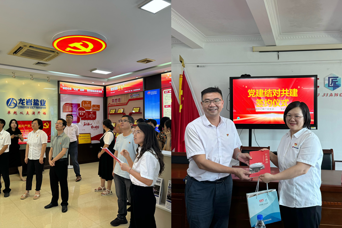 黨建共聯,聚力前行。為進一步深化黨紀學習教育,深化拓展“三爭”行動,充分發揮黨建共建的橋梁紐帶作用, 7月17日,龍巖鹽業黨支部與龍巖市疾控中心第二黨支部聯合開展“黨建共建促發展” 主題共建活動暨簽約儀式。龍巖市疾控中心第二黨支部、龍巖鹽業黨支部等共23人參加。