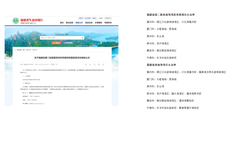 美麗海灣建設是美麗中國建設在海洋領域的集中體現和重要載體。為進一步引導、推動全省美麗海灣建設,近日,福建省生態環境廳公示了福建省第二批美麗海灣優秀案例和美麗海灣名單。其中,由金皇環保協助地方申報的海灣中,有3個獲評福建省第二批美麗海灣優秀案例,6個獲評福建省美麗海灣。