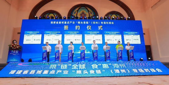 圖注:漳州鹽業(yè)(右三)亮相“糧頭食鏈”對接會
