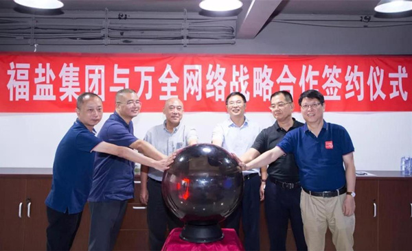 2018年8月2日,福建省鹽業集團有限公司和萬全速配網絡科技有限公司在萬全網絡福州總部簽訂戰略合作協議。輕紡控股黃文定總經理、省鹽業公司徐宗明董事長、莊燦陽常務副總,萬全網絡黃浩東董事長、唐為崇總經理、張而俊副總經理出席簽約儀式。