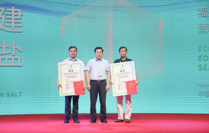 經(jīng)中國鹽業(yè)協(xié)會(huì)生態(tài)海鹽評(píng)審管理技術(shù)委員會(huì)審定,福鹽集團(tuán)旗下的福建省莆田市晶秀輕化有限公司及福建省泉州晶海輕化有限公司生產(chǎn)的食鹽產(chǎn)品首家通過了《生態(tài)海鹽評(píng)價(jià)技術(shù)規(guī)范》評(píng)審。發(fā)布會(huì)上,中鹽協(xié)會(huì)宋占京副理事長鄭重地將《生態(tài)海鹽證書》頒發(fā)給了福建省莆田市晶秀輕化有限公司及福建省泉州晶海輕化有限公司。