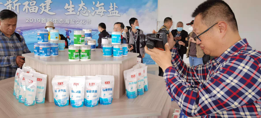 晶秀公司林瑞坤總經(jīng)理向攝影采風(fēng)團(tuán)介紹公司的主要產(chǎn)品,其中福建貢鹽、天然海晶鹽、福建原鹽、精選自然鹽2018年獲得綠色食品認(rèn)證標(biāo)志,同年獲得第十九屆中國綠色食品博覽會(huì)金獎(jiǎng)。2020年晶秀公司獲得全國首張“生態(tài)海鹽”生產(chǎn)證書。