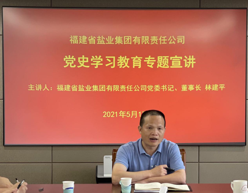 5月17日下午,福建省鹽業集團有限責任公司黨委書記、董事長林建平在公司八樓會議室作黨史學習教育專題宣講,公司中層以上干部、黨員、入黨積極分子等共36人參加。