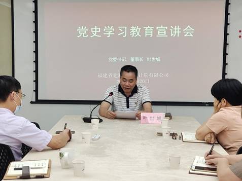 5月20日,福建省建筑輕紡設計院有限公司黨委書記、董事長葉世城作黨史學習教育專題宣講。公司領導班子、在職黨員、入黨積極分子共計30余人參加會議。