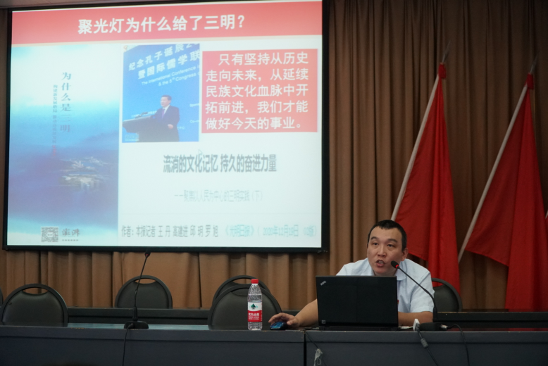 劉俊主任以《流淌的紅色記憶 持久的奮進力量—聚焦以人民為中心的三明實踐》為題,飽含深情講述紅色三明的故事。他認為三明是中央蘇區的核心區、是中央紅軍長征的出發地、是紅旗不倒的革命根據地、是偉人革命的重要實踐地。同時他強調,在當今時代,紅色故事在這里流傳,紅色基因在這里傳承,為三明的發展注入了不竭動力,鑄就了以人民為中心的“三明實踐”:堅持正確方向,一張藍圖繪到底;堅持人民至上,托起群眾的笑臉;堅持自我革命,善用改革開新局。探索符合自身實際的發展路子。
