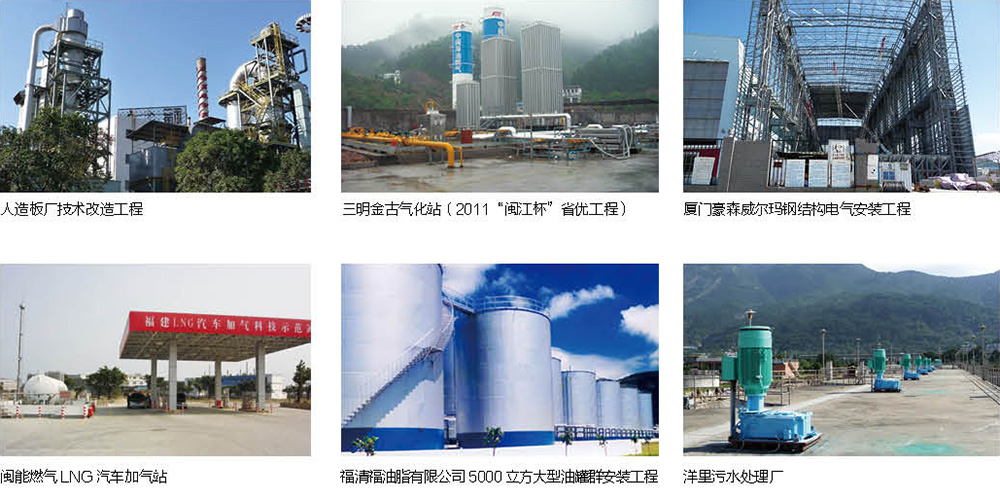 公司能夠承接重型工業(yè)、輕紡工業(yè)、石油化工、工業(yè)鍋爐熱電、電子信息工業(yè)、醫(yī)療制藥業(yè)、民用工程、消防工程、市政工程等大中型工程。承建有亞洲最大氯酸鹽產(chǎn)量,氯酸鉀規(guī)模世界第一的福州一化集團(tuán)技改工程;亞洲第一的青山紙業(yè)皮紙脫墨生產(chǎn)線工程;福建省東南電化集團(tuán)15萬噸/年產(chǎn)PVC技改工程;福州市中亭街址六萬平方暖通工程;馬尾船政海洋工程裝備及特種船舶項(xiàng)目陸域工程第一、二部分投資建設(shè)項(xiàng)目等。